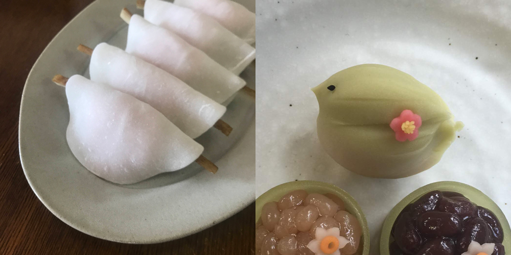 【メニューB:花びら餅、春告鳥(練切)】