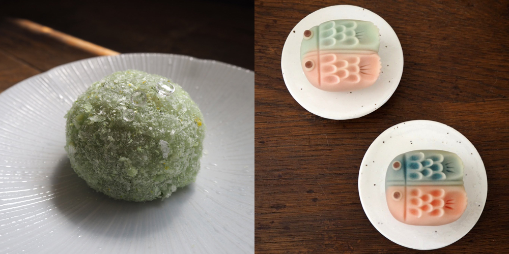 【メニューB:春の露(道明寺)、鯉のぼり(練切)】